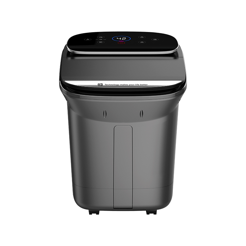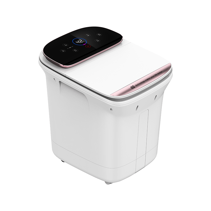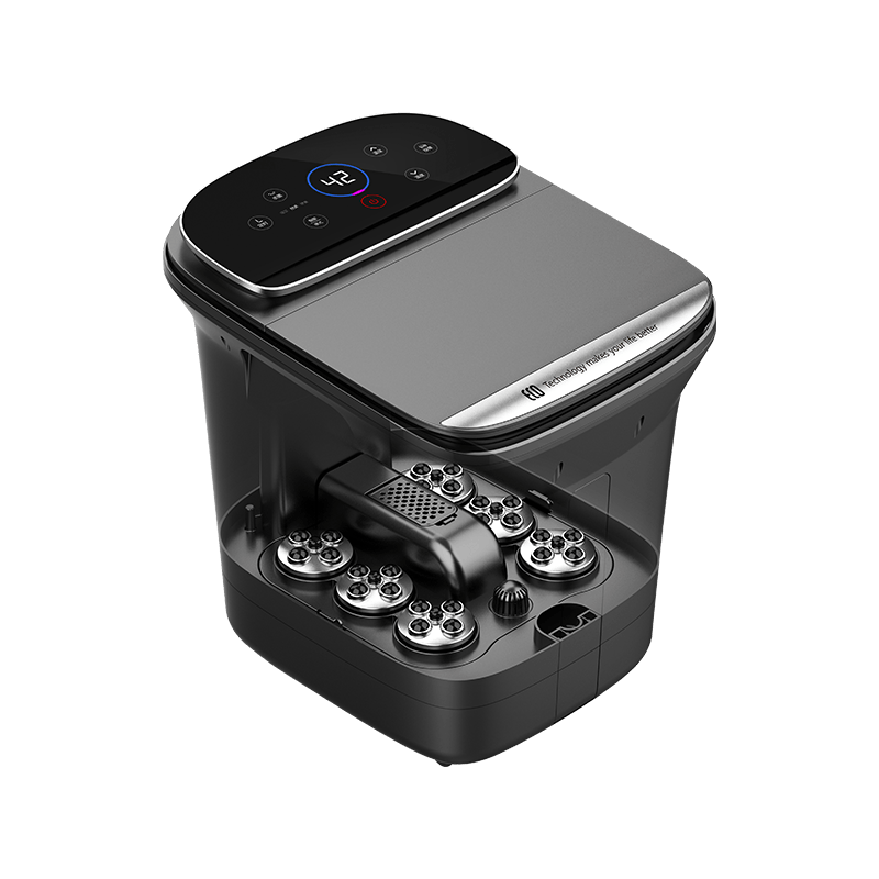 Z-2202 Baño para pies con protección contra fugas, disponible en acabados personalizables de platino y gris plateado, combina una estética elegante con una funcionalidad avanzada. Su bañera de 18 litros y 300 mm de profundidad, alimentada por un sistema de calentamiento rápido de 1000 W con termostato inteligente, calienta rápidamente el agua a unos relajantes 35-48°C. El baño de pies cuenta con seis almohadillas de masaje de Tai Chi que brindan amasado y acupresión, masaje totalmente automático, esterilización con ozono UV y un panel de control con pantalla táctil para una fácil operación. Su diseño a prueba de fugas garantiza un uso seguro y sin preocupaciones, mientras que la separación de agua y electricidad y un interruptor de protección contra fugas brindan seguridad adicional. Complementado con un compartimento oculto para medicamentos con tapa abatible y luces ambientales multicolores para andar en bicicleta, el Z-2202 ofrece una experiencia de spa para pies higiénica, relajante y elegante, adecuada para el hogar, la oficina o espacios de bienestar.